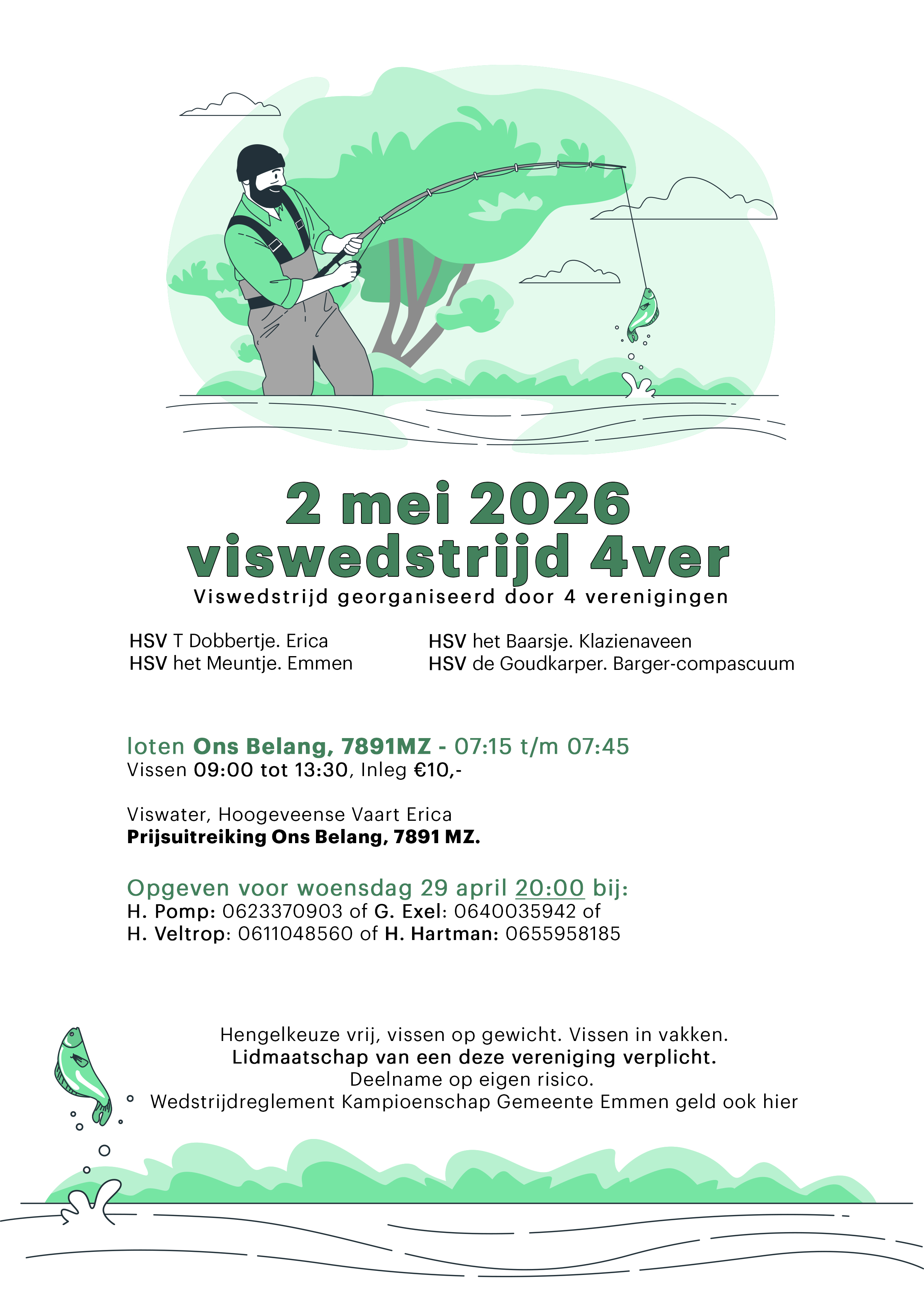 Deze website houdt u op de hoogte van het laatste nieuws en geeft informatie over de activiteiten en wedstrijden van onze hengelsportvereniging. Belangrijk is ook dat voorafgaand aan de wedstrijd(en) het viswater waar gevist zal worden op deze site gepubliceerd zal worden.